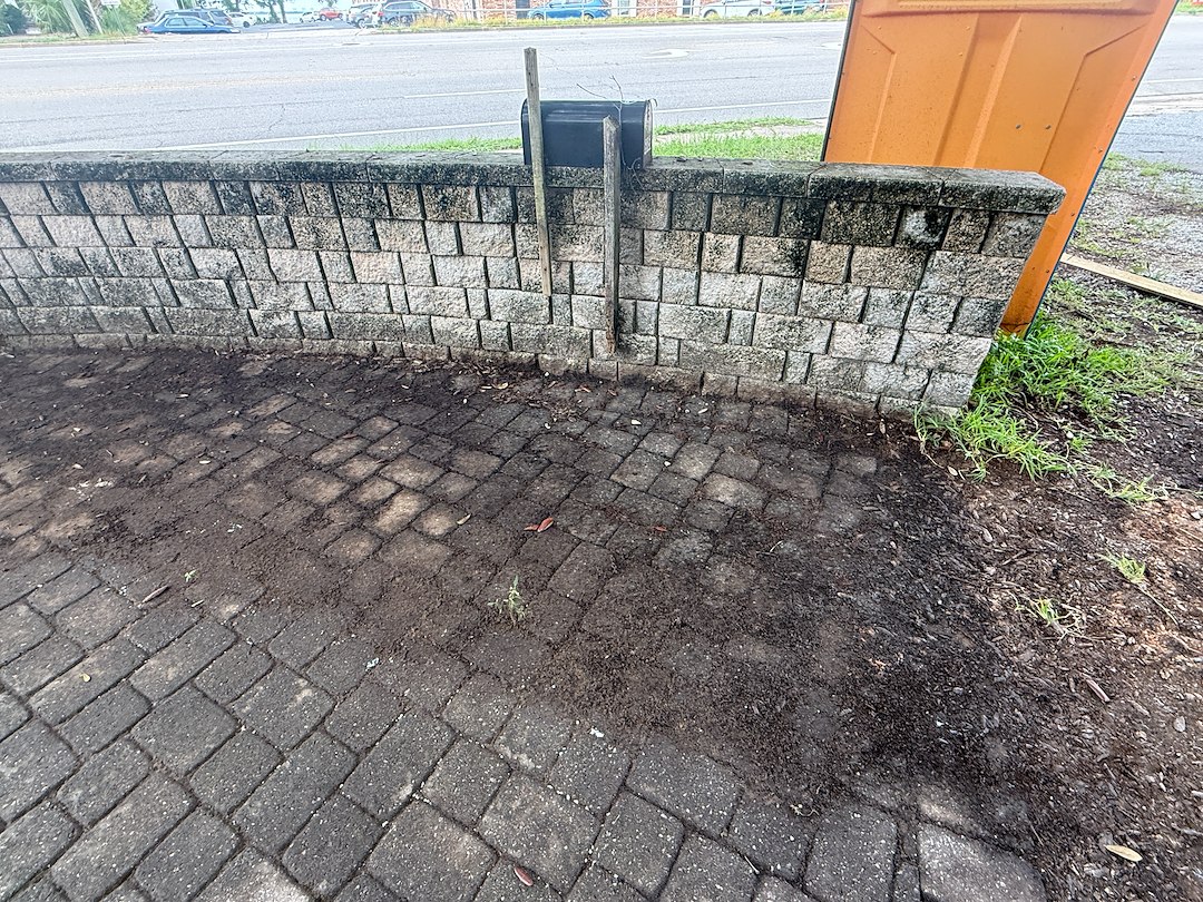 For the paver patio, driveways, and sidewalks, we used professional-grade surface cleaners. This ensured a uniform, streak-free result and effectively eliminated built-up dirt, stains, and even stubborn chewing gum. We also paid close attention to the driveway, removing oil spots and tire marks to present a clean, welcoming entrance for their new customers.